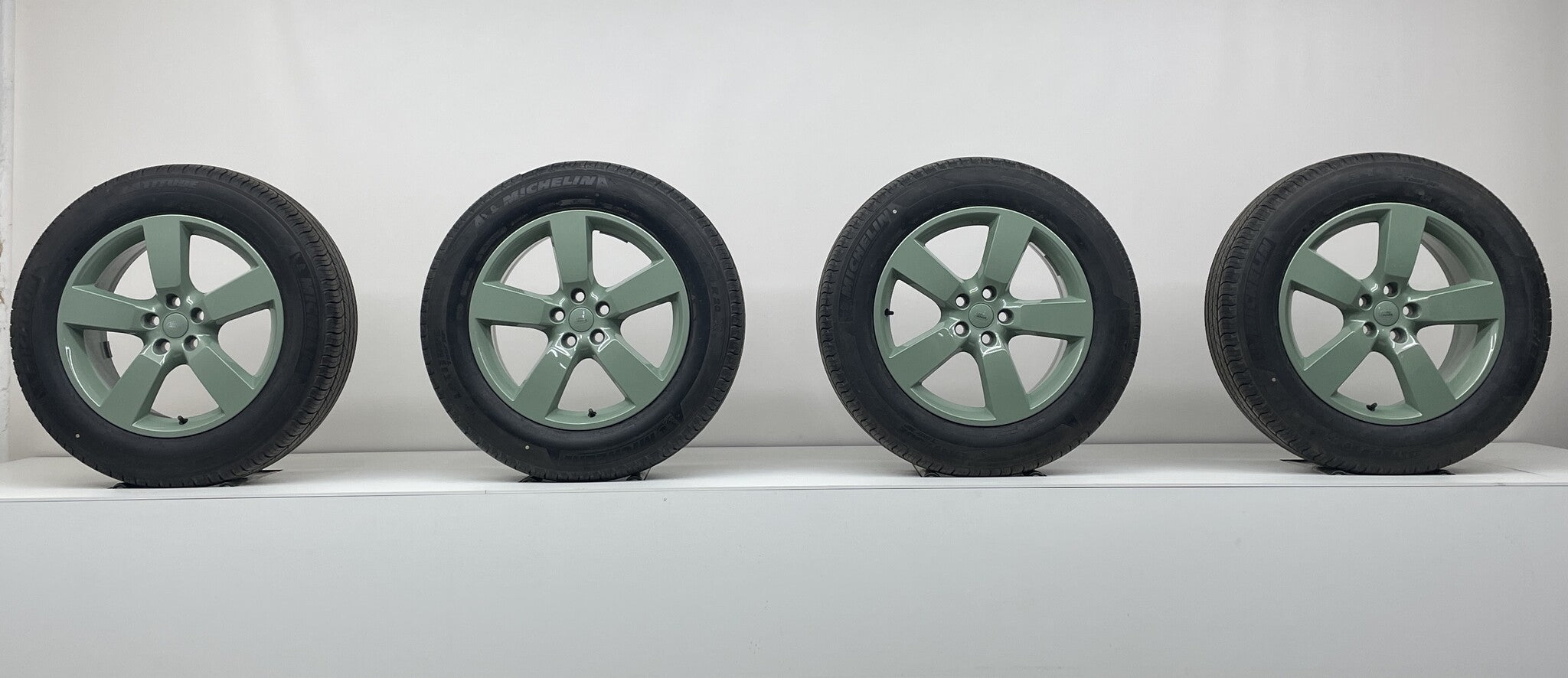Complete set van 5 Heritage wielen, direct klaar voor gebruik.