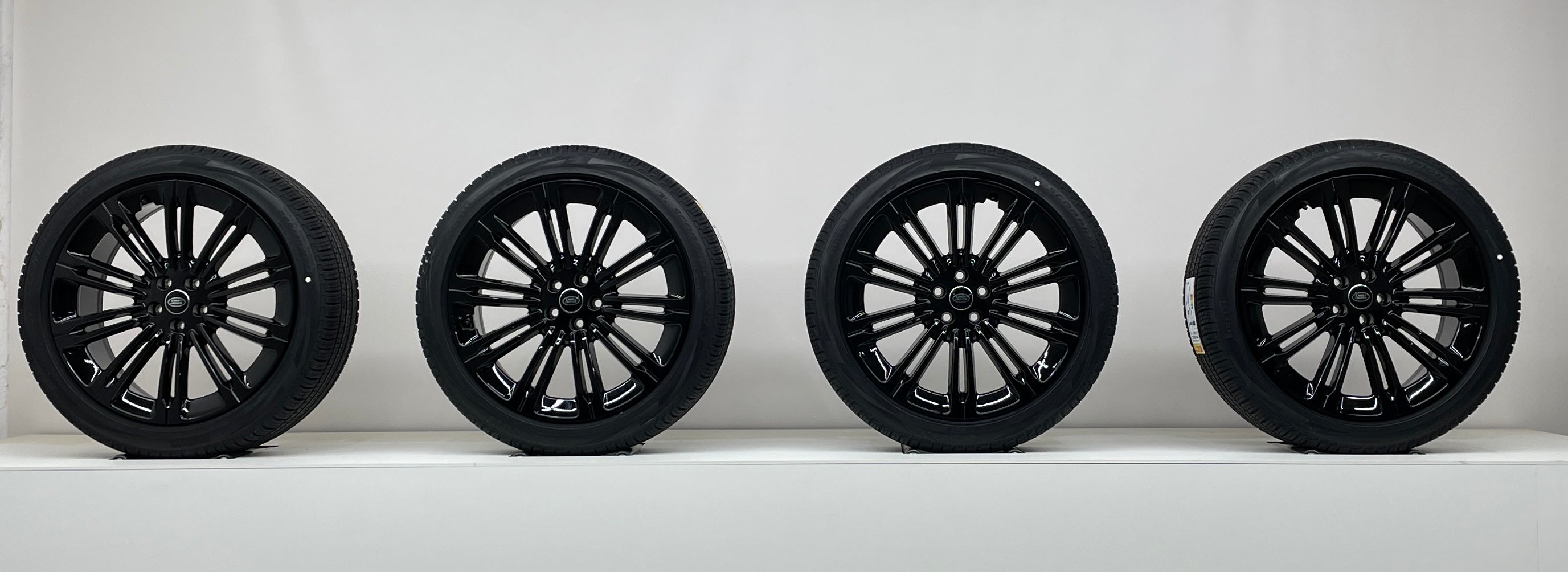 Splinternieuwe set velgen en banden, origineel land Rover en direct te monteren onder uw auto.